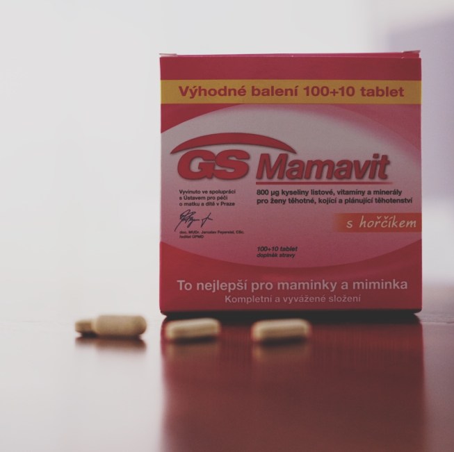 Hned od počátku těhotenství jsem si koupila GS Mamavit. Nevím proč, přišel mi fajn, ale hlavně je v něm kromě kyseliny listové i jód a ten potřebuju kvůli snížené funkci štítné žlázy. Do 4. měsíce jsem brala 1 tabletu denně, protože na začátku těhotenství potřebuje plod kyseliny listové nejvíc, ale teď už beru jen půlku. Stačila by i samotná, slabší, kyselina listová, ale protože mám s tímhle komplexním složením vitamínů výsledky z krve v pořádku (je tam i hořčík a další věci), rozhodla jsem se u nich zůstat. Nevýhoda je, že tablety jsou hodně velké, špatně se polykají a to i rozpůlené. Taky se mi po nich v prvním trimestru zhoršovalo zvracení, takže jsem si musela dobře načasovat, kdy vitamin spolknout. Kromě toho mi ještě doktorka napsala Vigantol, vitamin D, který beru jednou týdně. V těhotenství taky ještě víc dbám na zuby. Nezanedbávám mezizubní kartáčky a hlavně, řeším krvácející dásně, které často v tomto období zlobí. Hygienistka mi doporučila gel na dásně Enzymel a fakt funguje.