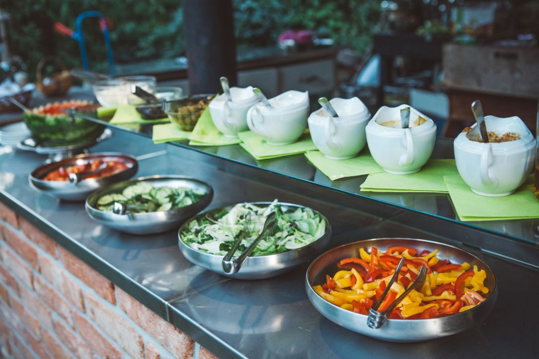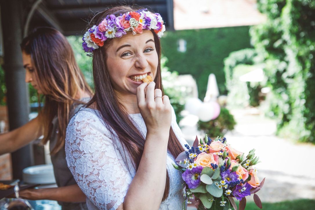 Už z předchozích článků jste asi pochopili, že svatba nebyla tak úplně tradiční a v tom směru se to neslo i v oblasti jídla. Neprobíhal žádný servírovaný oběd, nebyla svíčková, nebylo „krmení“ knedlíčkovou polévkou. Tradice mám ráda, ale na naší svatbu by se to jednak nehodilo, v tom horku by ani svíčkovou nikdo jíst nechtěl a navíc, servírovat oběd devadesáti lidem, to by se pěkně protáhlo.