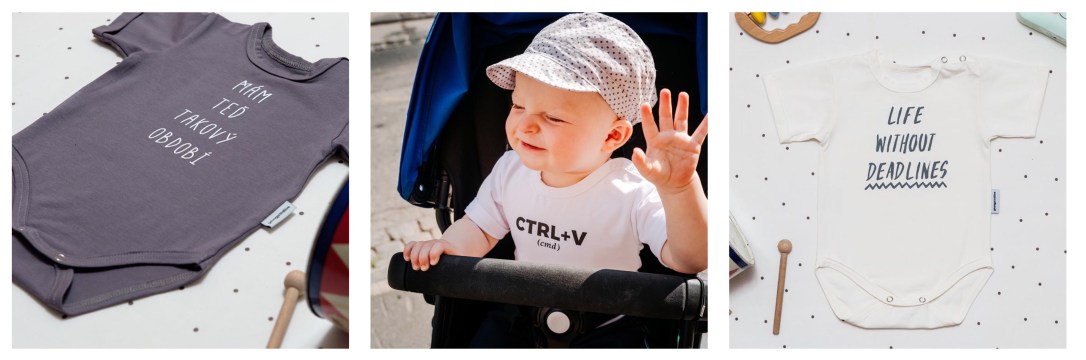 Českou originální značku Young Primitive mám moc ráda a baví mě i dětská řada. Mají toho víc, ale jako dárek jsou podle mě nejvtipnější bodýčka. Jsou za super cenu 390 Kč (a některá bodýčka mají společný vzor s dospěláckými tričky, třeba CTRL+C a CTRL+V, které jste mohli vidět na mém Instagramu).