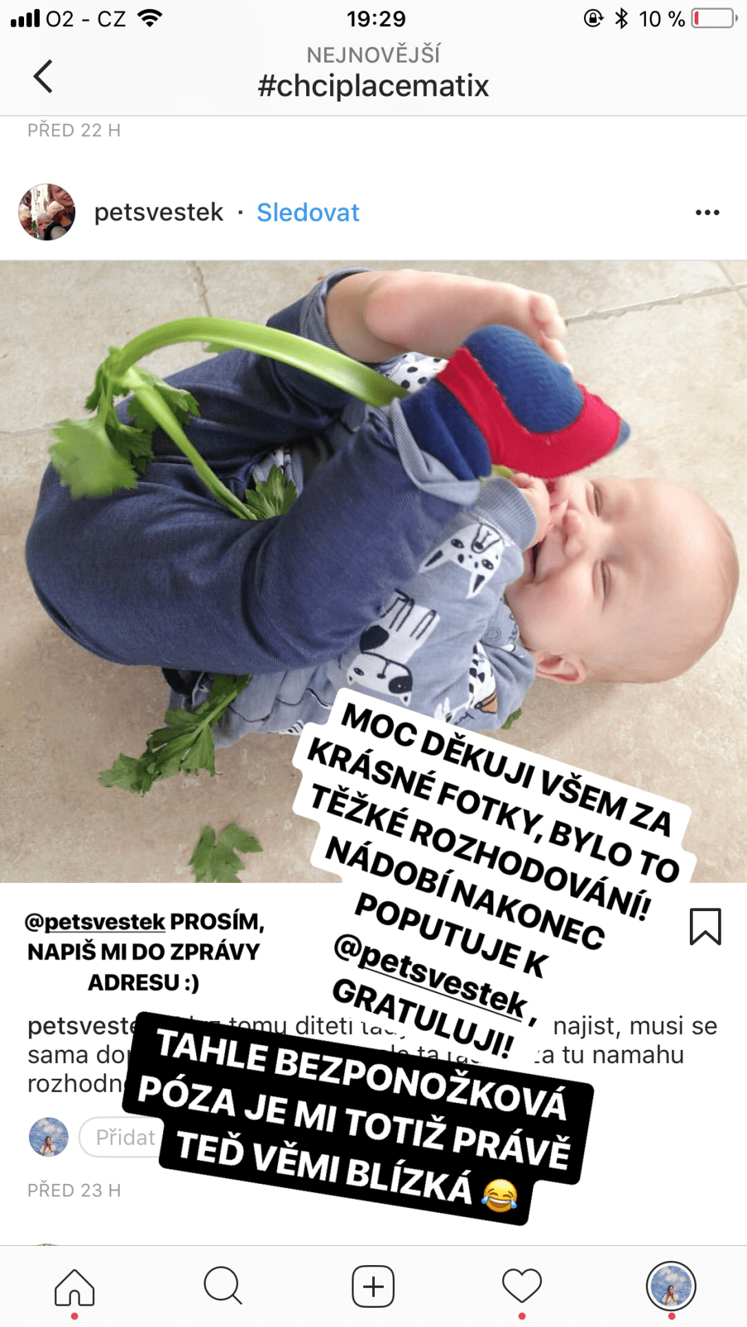 Děkuji všem za účast v soutěži a přidávám screen shot z Instagramu, kde jsem výherce oznámila jako první. Gratuluji!