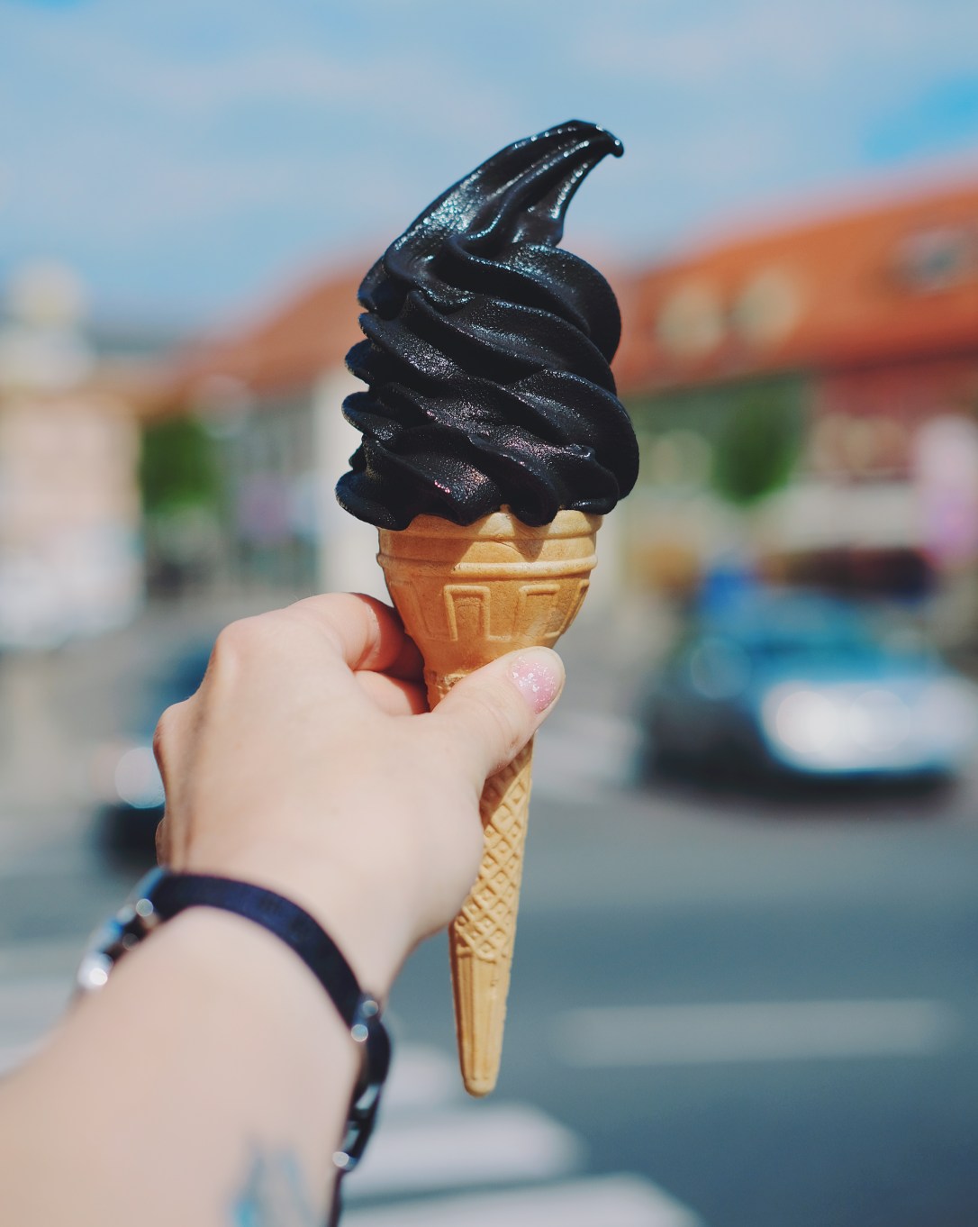 Naše trasa začíná v 10:30 na neplaceném parkovišti u řeky, hned u náměstí. Petr s Klárou už nás vyhlížejí, protože tradičně jedeme pozdě. Jen co zaparkujeme, míříme do cukrárny U Reinvaldů. Tu najdete hned na kraji náměstí, na růžku, a mají tady senzační zmrzlinu. Spoustu druhů kopečkové (včetně příchutí jako jsou vanilkové rohlíčky nebo Tofiffe) a taky různé točené. Já si objednala točenou Oreo, protože mě fakt zaujala svojí černou barvou. Se zmrzlinou v ruce se jdeme podívat k zámečku. Koho zajímají památky, ten může i na prohlídku, ale my dnes máme jiný program, takže jen omrkneme uměleckou instalaci v podobě srdíček otáčejících se po větru a záhon plný růží, které tu zasadily různé významné osobnosti. To vše se nachází na „nádvoří“ u kina. Když pak dojdete na zadní nádvoří, můžete ochutnat první z poděbradských pramenů na naší trase – pramen Bülow, který se nachází právě zde. A kdo nebude mít dost, ten si dá prameny ještě za branou zámku, po levé ruce (pramen Hohenlohe).