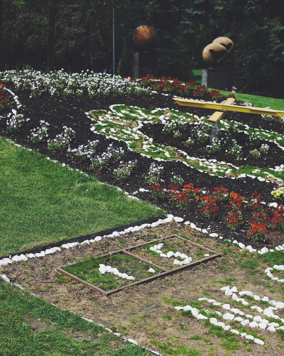 Kolonáda má několik částí. Hned na kraji je taková moderní, dřevěná část s hezkým parkem vhodným na piknik, dál pokračuje kolem Eliščina pramene ta tradiční. Pozastavujeme se nad květinovými hodinami v trávě, které jsou zajímavé tím, že je na nich datum vyskládané z kamínků. Vždy o půlnoci někdo musí datum ručně přeskládat. A hned za hodinami je zase něco pro nejmenší výletníky. Stojí tam trpaslík s kladivem a každých 15 minut klepne do kovové houby.