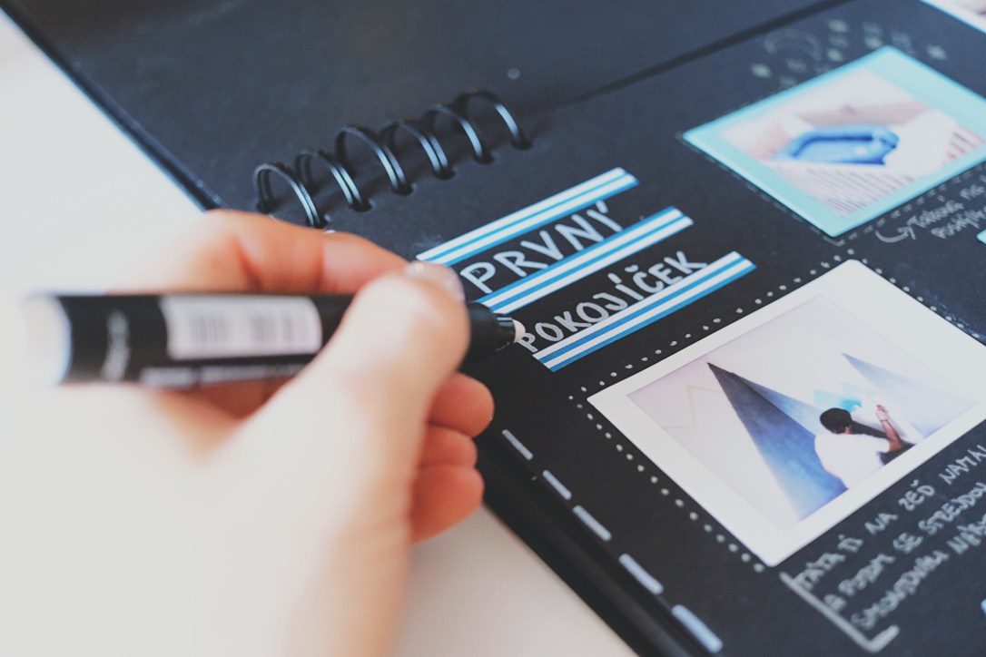 Pokud si vyberete blok s černým papírem, stejně tak jako já, budete potřebovat i speciální výbavu na psaní a další dekorace. V každém papírnictví seženete bílé fixy. Hodí se tenká (na psaní a jemnější malování) i tlustá. Kromě toho jsem pořídila fixu ve stříbrné a zlaté barvě a taky sadu neonových gelovek. Ty totiž vypadají na černém papíru skvěle. Nedílnou součástí našeho deníku jsou washi pásky – japonské papírové lepenky nejrůznějších barev. Ty se dají využívat k připevňování věcí na památku, ale taky k dekoraci. Plastové věci a fotky podchytím vždy buď klasickým lepidlem, oboustrannou lepenkou a někdy i průhlednou izolepou (ale tu moc nepoužívám, protože není hezká). Kdybych měla holčičku, rozhodně tam budou ještě třpytky!