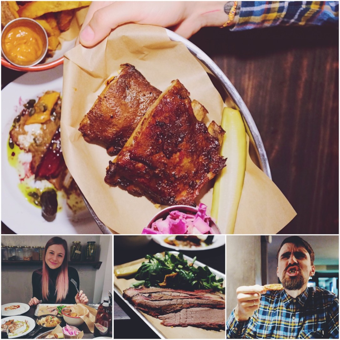 Čerstvé maso na foodie trhu Barcelony! Doslova. Podnik je celkem krátce otevřený a zase mi ho doporučila barcelonská foodblogerka. Je zaměřený na maso (hlavně žebra), uzenou chuť a pickles. Když se posadíte do patra, možná uvidíte do otevřené kuchyně, odkud se line neuvěřitelně uzená vůně. Objednali jsme si dva masové hlavní chody a k nim asi 5 různých příloh, protože jsme chtěli ochutnat. Co vám budu povídat, na dezert zase nezbylo místo, ale byla to teda lahoda. Pokud jste masožravci a chcete se zašít do temného prostoru vonícího kouřem a jíst umaštěnýma rukama ze smaltovaných talířů, tohle je to místo.