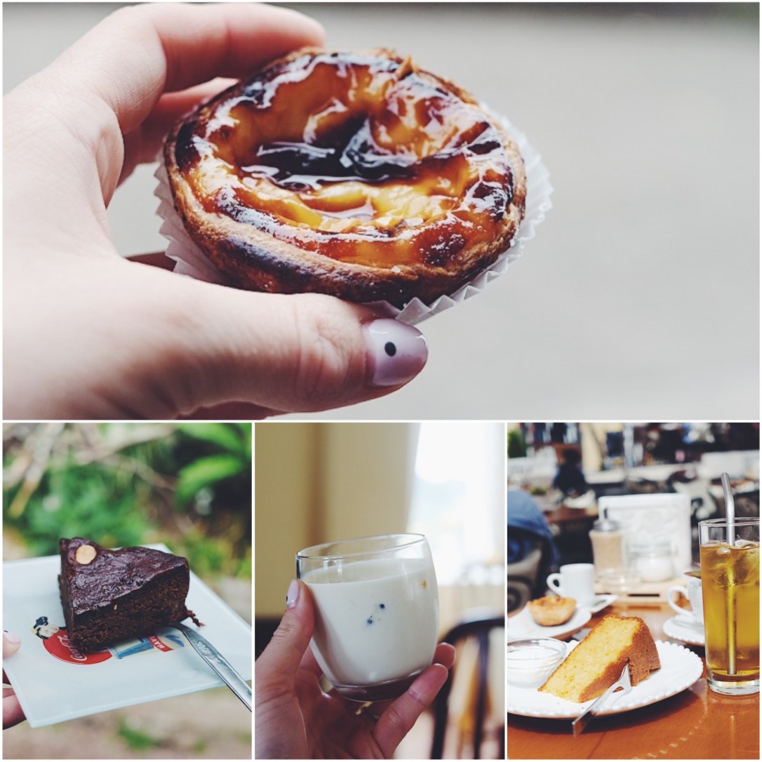 Kdybych já si dělala poznámky, řekla bych vám, jak se přesně jaká dobrota jmenuje, ale takhle vám některé můžu popsat jen vlastními slovy a doufat, že je poznáte. Jak první vám představím Belémské koláčky. V každé kavárně i sámošce uvidíte košíčky – takové velké tartaletky z listového těsta plněné krémem, který je na povrchu připečený do hněda. Chutná to jako měkoučké Créme Brulée a je to naprostá lahoda. Jestli jednou ochutnáte, budete v pasti a příště si dáte zas. Dvakrát.