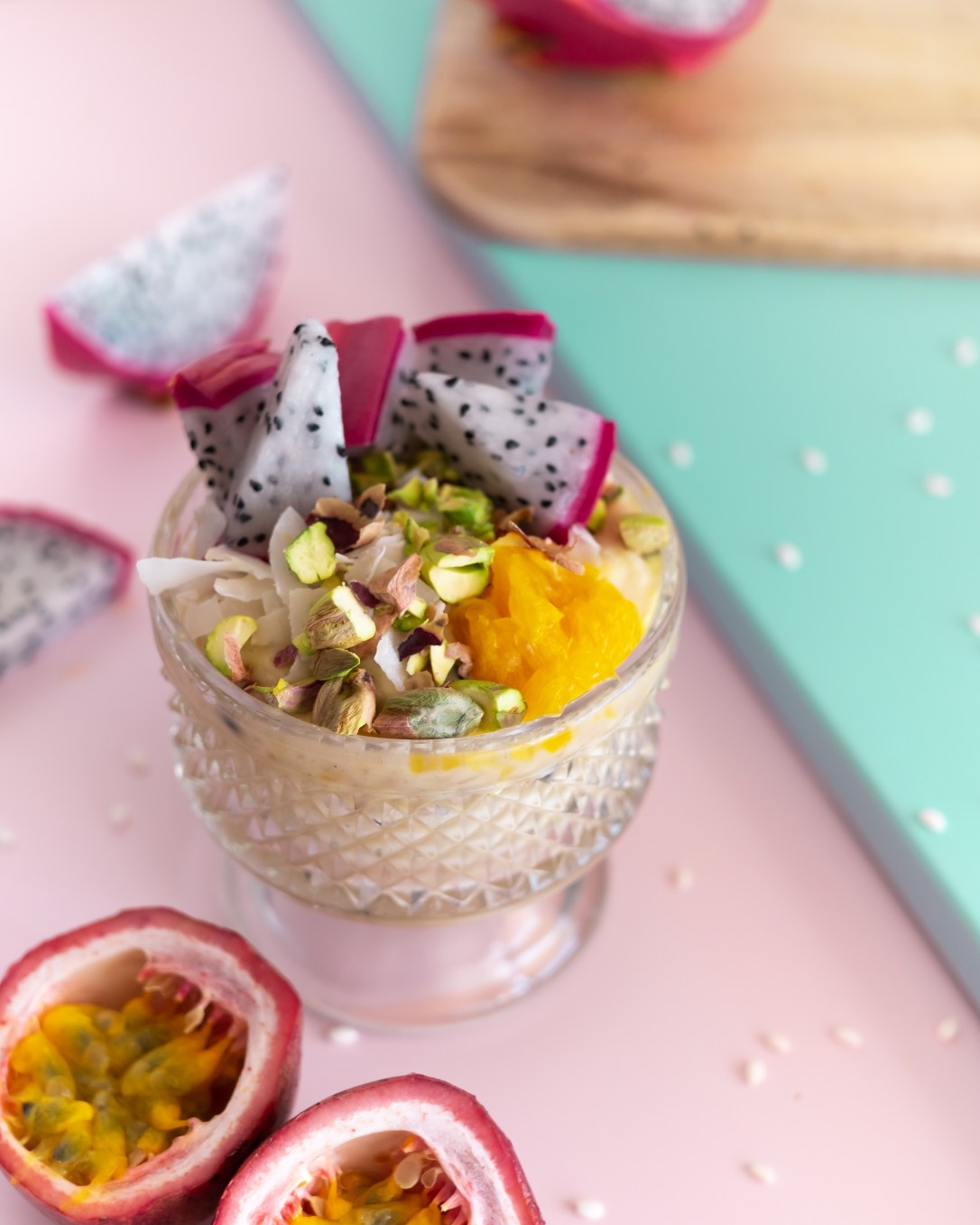 - Na zdobení a podávání: Pomeranč, pistácie, plátky koskosu, dragon fruit, zkrátka podle chuti a nálady