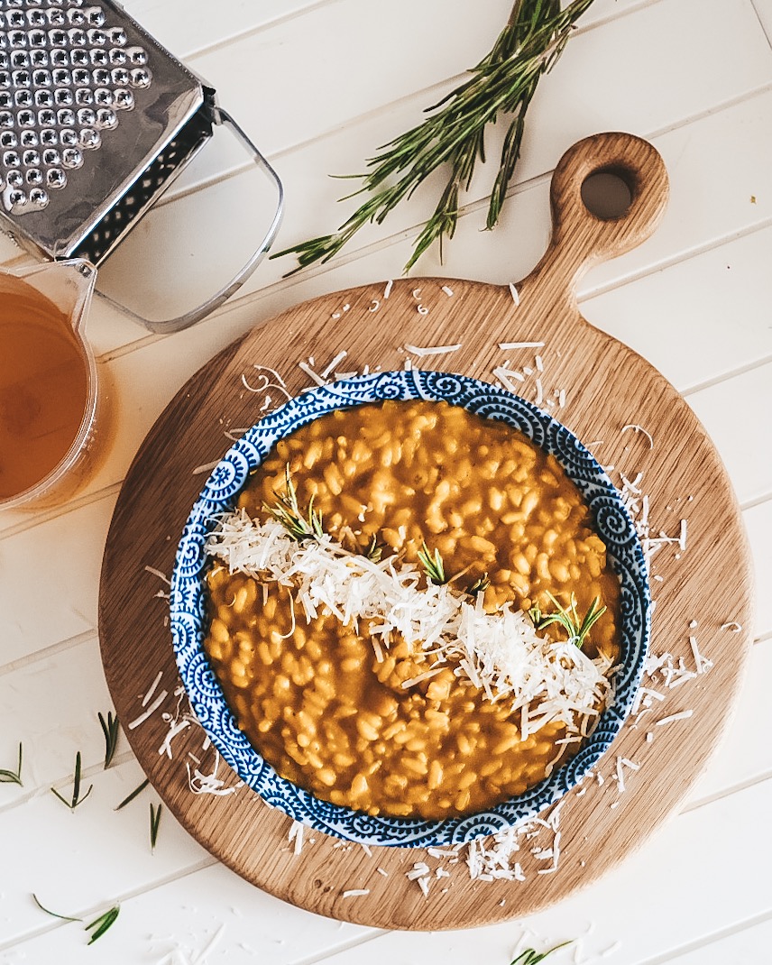 Dýňový risotto je taková dobrota! A nejlepší je, že je v něm ta dýně, takže „tajně“ propašovaná zelenina a Tondovi to strašně chutná. Sice by normálně dýni nechtěl, ale ještě je ve věku, kdy mu prostě oznámím „rejži s omáčkou“ a on sní dva talíře :D S Ondrou je to horší, ten dýni nemá rád a už mu ji jako omáčku neprodám. Neva. Aspoň zbyde víc pro mě.
