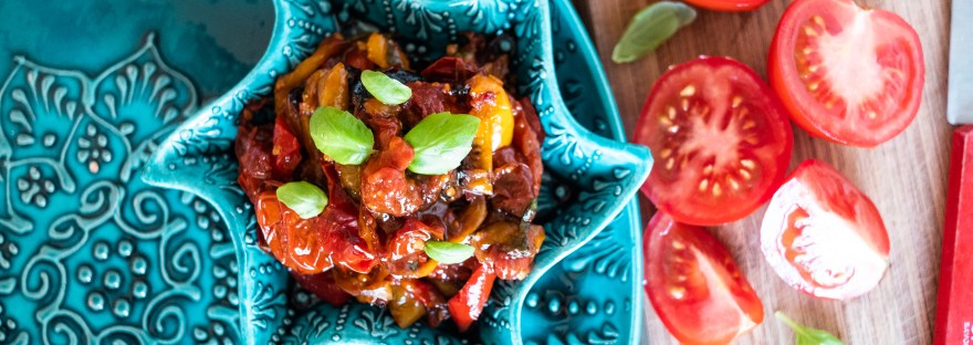 Nikdy jsem nebyla moc velký fanda grilované zeleniny, ale postupem času se to nějak zlomilo a teď se po ní můžu „utlouct“. Nejradši mám cukety a lilky, ale grilované papriky a rajčata za to taky stojí. A ve formě tohoto salátku chutnají skvěle teplé i studené, jako příloha i jako hlavní chod. Pokud se rozhodnete jíst je doopravdy jako hlavní jídlo, přidejte k nim balkánský sýr. Stačí, když ho rukama nadrobíte na menší kousky.