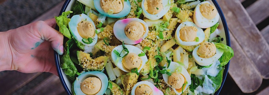 Letos na Velikonoce je to poprvé, co moc nejíme pečivo, takže nedělám tuny klasické vajíčkové pomazánky. Ale vajíček z koledy je spousta, takže je využívám jinými způsoby. Dneska jsem uděala jarní salát, na kterém vlastně není nic moc speciálního a je dost jednoduchý, ale jako tip na využití vajíček by se možná mohl někomu s vás hodit :) Tak jdeme na něj!